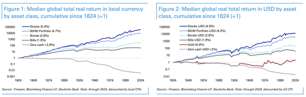 A primeira conclusão fundamental aparece logo no início ao analisar o retorno real global acumulado desde 1824, temos: