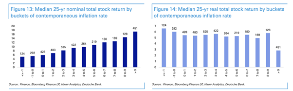 - Retornos reais caem conforme a inflação sobe (exceto em faixas moderadas).