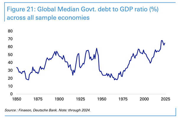 - Países com altos níveis de endividamento tendem a ter piores retornos reais de bonds e equities.