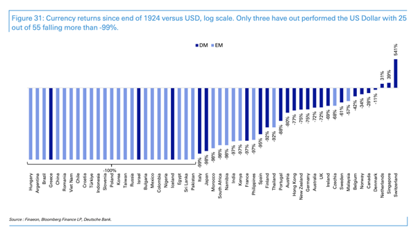 - De 55 moedas analisadas desde 1924, apenas 3 se valorizaram contra o dólar: